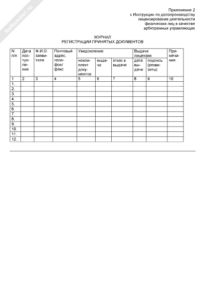 - 589Журнал регистрации принятых документов от соискателей лицензии арбитражного управляющего
