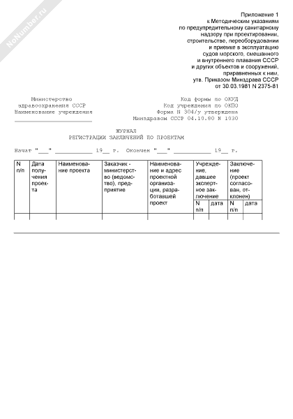 - 595Журнал регистрации заключений по проектам на строительство, переоборудование и ремонт судов. Форма № 304/у