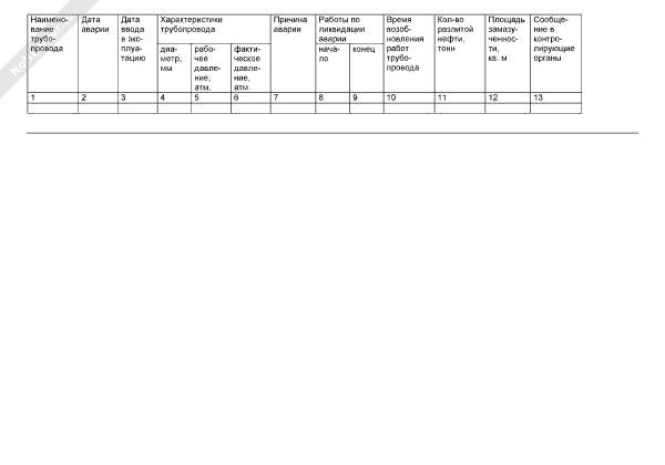 - 602Журнал регистрации аварий на магистральных нефтепроводах, связанных с экологическим ущербом (форма № 2)