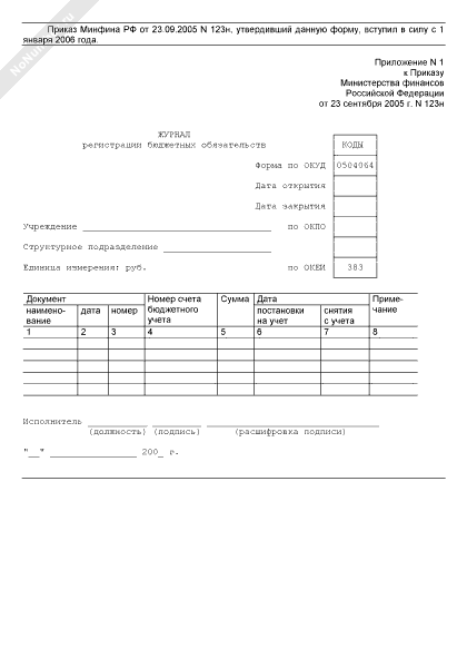 - 601Журнал регистрации бюджетных обязательств для ведения бюджетного учета для органов государственной власти Российской Федерации, федеральных государственных учреждений