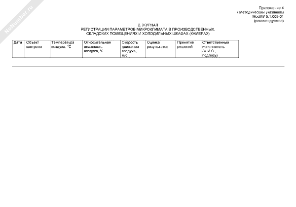 - 614Журнал регистрации параметров микроклимата в производственных, складских помещениях и холодильных шкафах (камерах)