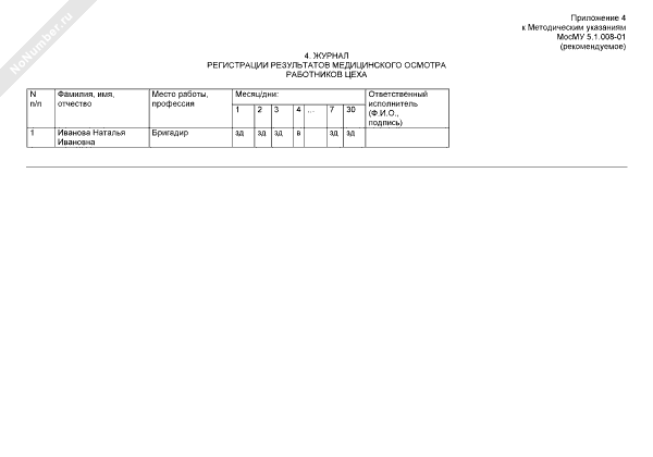- 615Журнал регистрации результатов медицинского осмотра работников цеха