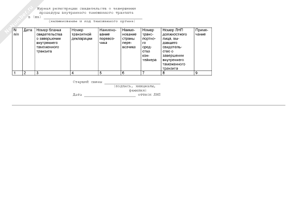 - 606Журнал регистрации свидетельств о завершении процедуры внутреннего таможенного транзита