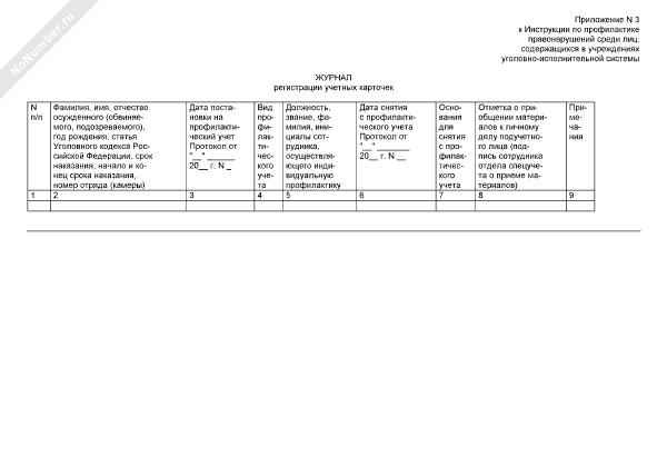 - 617Журнал регистрации учетных карточек лиц, содержащихся в учреждении уголовно-исполнительной системы, поставленных на учет по профилактике правонарушений
