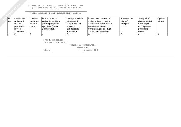 - 607Журнал регистрации заявлений о временном хранении товаров на складе получателя