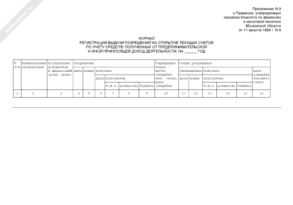 - 661Журнал регистрации выдачи разрешений на открытие текущих счетов по учету средств, полученных от предпринимательской и иной приносящей доход деятельности в Московской области