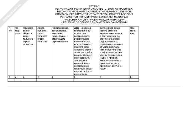- 668Журнал регистрации заключений о соответствии построенных, реконструированных, отремонтированных объектов капитального строительства требованиям технических регламентов (норм и правил), иных нормативных правовых актов и проектной документации и решений об отказе в выдаче таких заключений
