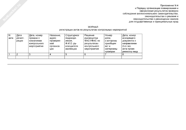 - 703Журнал регистрации актов по результатам контрольных мероприятий ФАС России