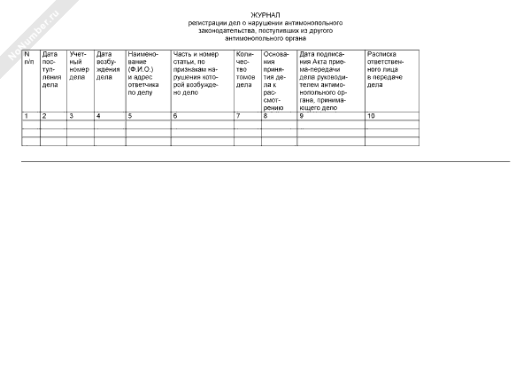 - 706Журнал регистрации дел о нарушении антимонопольного законодательства, передаваемых на рассмотрение в другой антимонопольный орган