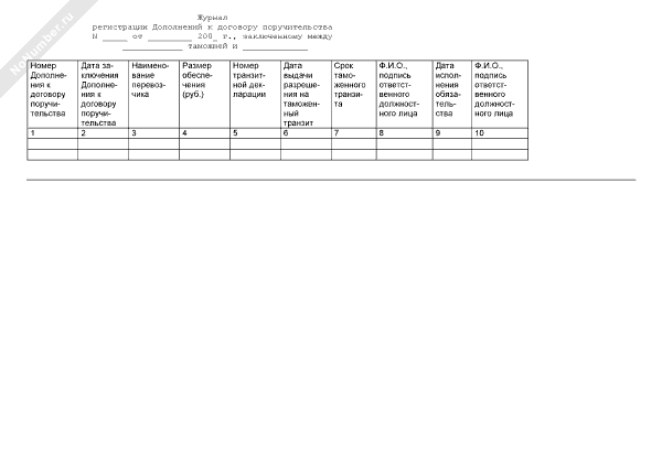 - 720Журнал регистрации дополнений к договору поручительства между ФТС России и поручителями, при внутреннем и международном таможенном транзите