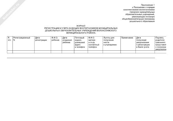 - 708Журнал регистрации и учета будущих воспитанников муниципальных дошкольных образовательных учреждений Волоколамского муниципального района