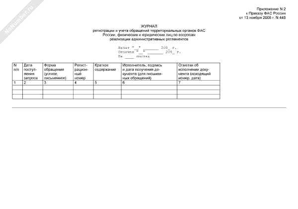 - 704Журнал регистрации и учета обращений территориальных органов ФАС России, физических и юридических лиц по вопросам реализации административных регламентов