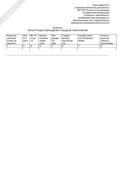 - 714Журнал регистрации обращений о выдаче заключений о применении мер нетарифного регулирования при осуществлении внешнеэкономической деятельности