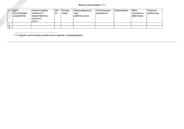 - 712Журнал регистрации представленных в Росстрой заявлений и документов (сведений) соискателя лицензии или лицензиата, поступающих в структурное подразделение Росстроя, в задачи которого входит организация работы по проведению лицензирования деятельности в области инженерных изысканий, проектирования и строительства