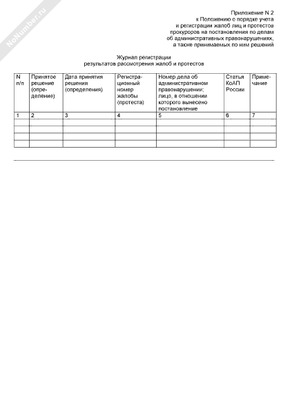 - 710Журнал регистрации результатов рассмотрения жалоб лиц и протестов прокуроров на постановления по делам об административных правонарушениях