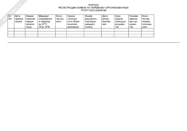 - 718Журнал регистрации заявок на перевозку организованных групп пассажиров поездами дальнего следования