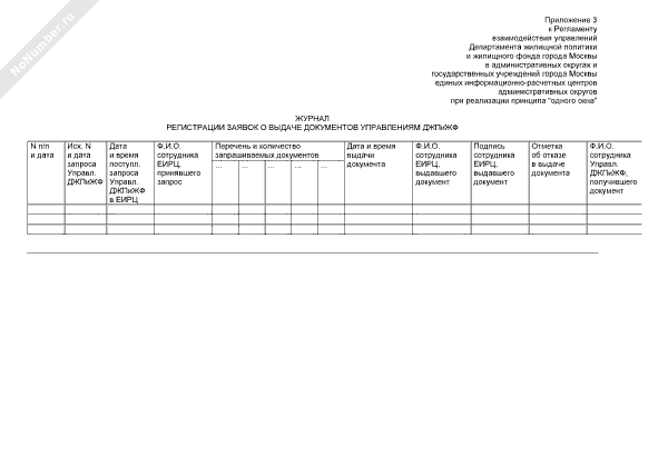 - 701Журнал регистрации заявок о выдаче документов управлениям Департамента жилищной политики и жилищного фонда города Москвы