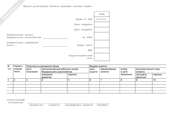 - 724Журнал регистрации бланков денежных чековых книжек получателей бюджетных средств