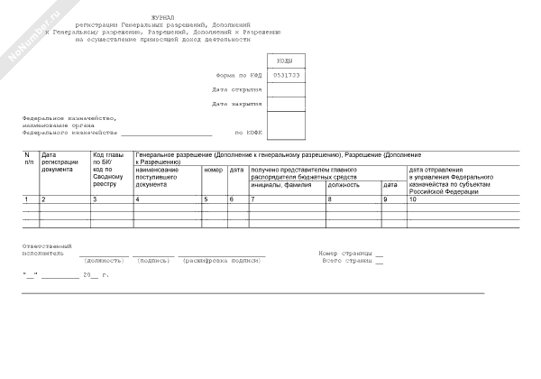 - 725Журнал регистрации генеральных разрешений, дополнений к генеральному разрешению, разрешений, дополнений к разрешению на осуществление приносящей доход деятельности