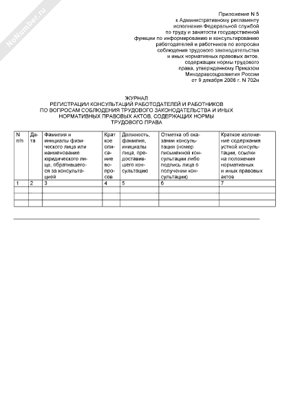 - 733Журнал регистрации консультаций работодателей и работников по вопросам соблюдения трудового законодательства и иных нормативных правовых актов, содержащих нормы трудового права