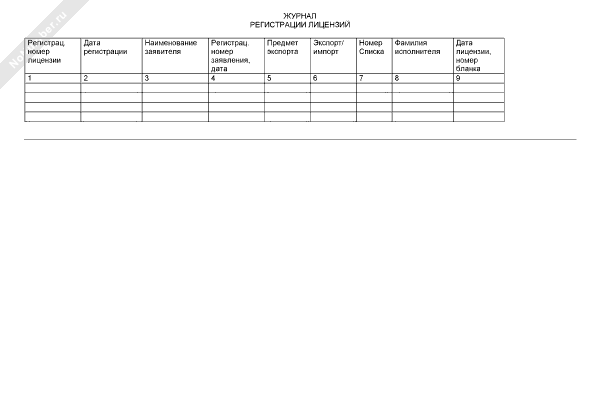 - 736Журнал регистрации лицензий на осуществление внешнеэкономических операций с контролируемой продукцией
