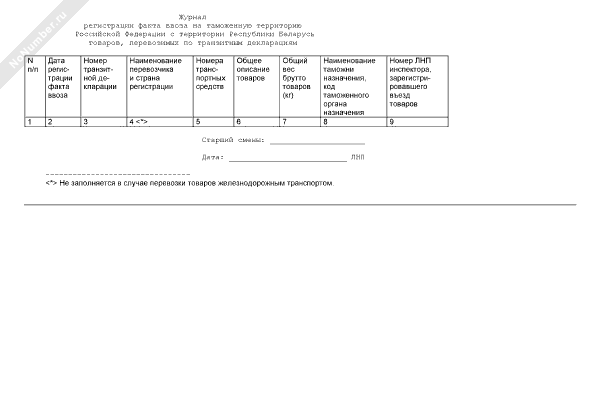 - 759Журнал регистрации факта ввоза на таможенную территорию Российской Федерации с территории Республики Беларусь товаров, перевозимых по транзитным декларациям