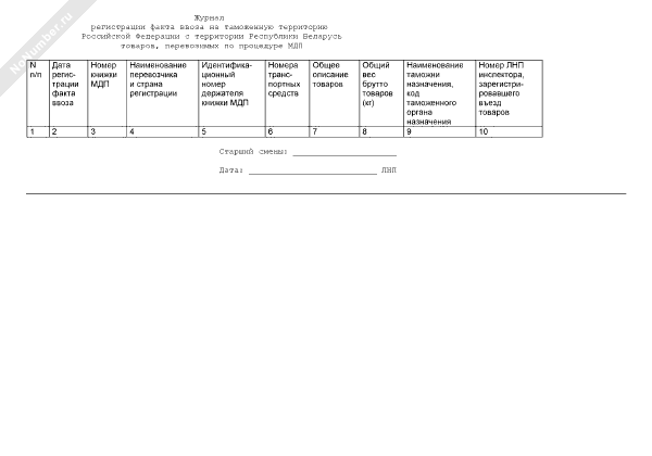 - 758Журнал регистрации факта ввоза на таможенную территорию Российской Федерации с территории Республики Беларусь товаров, перевозимых по процедуре МДП