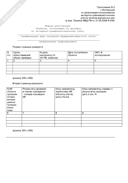 - 746Журнал регистрации объектов, поступивших на экспертно-криминалистический учет
