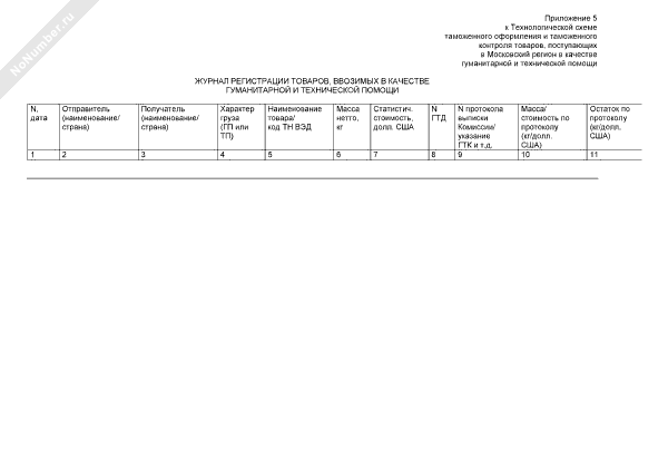 - 745Журнал регистрации товаров, ввозимых в качестве гуманитарной и технической помощи в в Московский регион