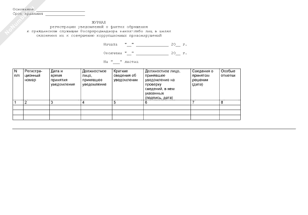 - 757Журнал регистрации уведомлений о фактах обращения к гражданским служащим Росприроднадзора каких-либо лиц в целях склонения их к совершению коррупционных правонарушений