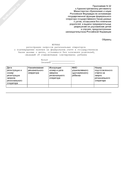 - 741Журнал регистрации запросов региональных операторов о подтверждении наличия на федеральном учете в государственном банке данных о детях, оставшихся без попечения родителей, сведений об усыновляемом (удочеряемом) ребенке