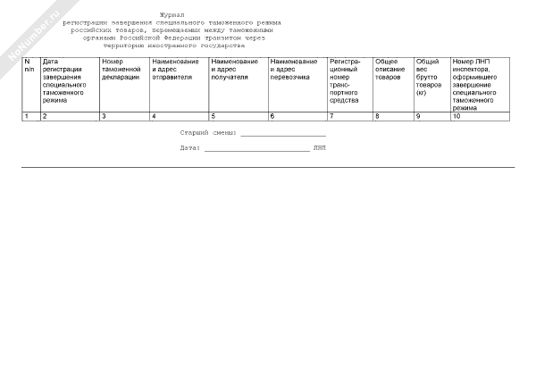 - 760Журнал регистрации завершения специального таможенного режима российских товаров, перемещаемых между таможенными органами Российской Федерации транзитом через территорию иностранного государства