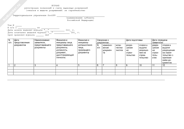 - 744Журнал регистрации заявлений и учета выданных разрешений (отказов в выдаче разрешений) на строительство в границах особой экономический зоны