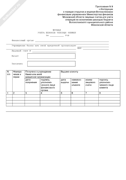 - 924Журнал учета бланков чековых книжек для получения наличных денежных средств в Волоколамском муниципальном районе Московской области