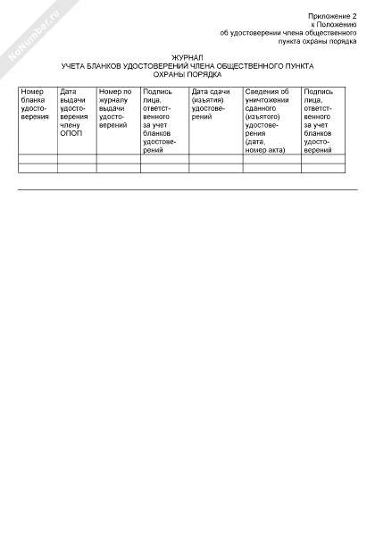 - 925Журнал учета бланков удостоверений члена общественного пункта охраны порядка