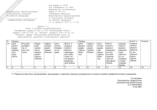 - 935Журнал учета в лечебно-профилактических учреждениях формы № 148-1/у-88 «Рецептурный бланк», формы № 148-1/у-04 (л) «Рецепт», формы № 148-1/у-06 (л) «Рецепт», формы «Специальный рецептурный бланк на наркотическое средство и психотропное вещество». Форма № 305-1/у