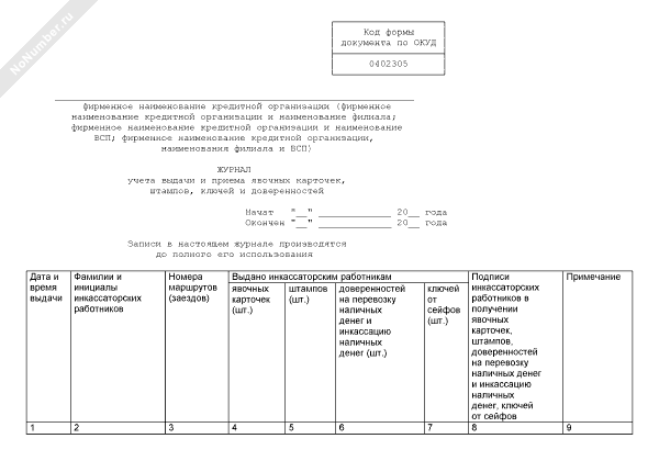 - 1022Журнал учета выдачи и приема явочных карточек, штампов, ключей и доверенностей кредитной организации (внутренних структурных подразделениях кредитной организации)