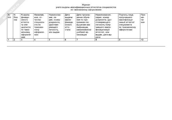 - 1026Журнал учета выдачи квалификационных аттестатов специалистов по таможенному оформлению