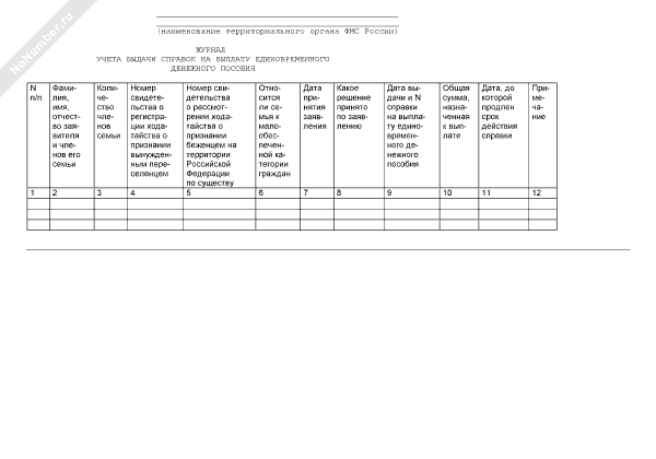 - 1027Журнал учета выдачи справок на выплату единовременного денежного пособия