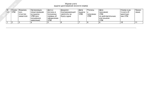 - 1037Журнал учета выдачи удостоверений личности моряка