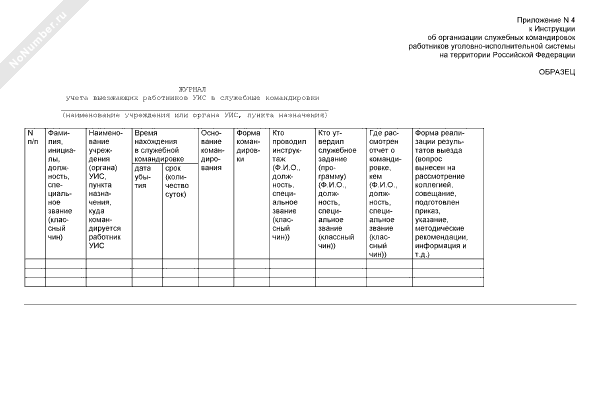 - 1038Журнал учета выезжающих работников уголовно-исполнительной системы в служебные командировки