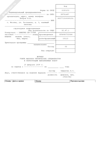 - 1034Журнал учета вызова технических специалистов и регистрации выполненных работ. Унифицированная форма № КМ-8