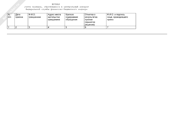 - 1057Журнал учета граждан, обратившихся в центральный аппарат Федеральной службы финансово-бюджетного надзора