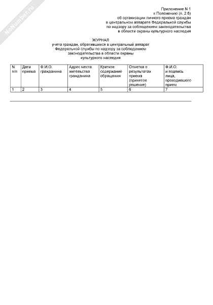 - 1059Журнал учета граждан, обратившихся в центральный аппарат Федеральной службы по надзору за соблюдением законодательства в области охраны культурного наследия