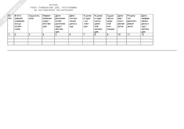 - 1052Журнал учета гражданских дел, направленных на кассационное рассмотрение в верховный суд Российской Федерации (форма № 27)
