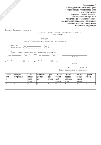 - 1050Журнал учета гражданских правовых договоров по научно-исследовательским, опытно-конструкторским и технологическим работам военного, специального и двойного назначения, права на которые принадлежат Российской Федерации