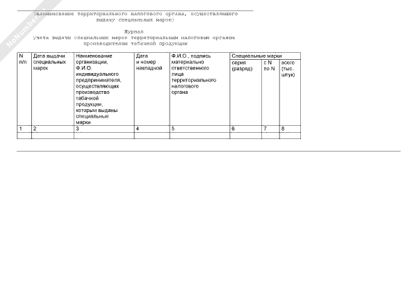 - 1043Журнал учета выдачи специальных марок территориальным налоговым органом производителям табачной продукции