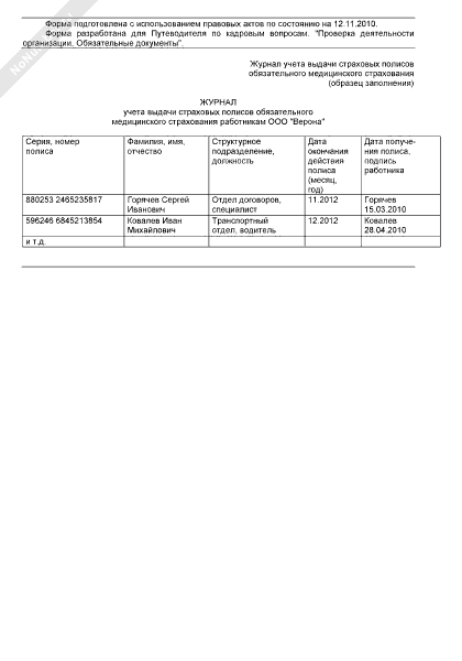 - 1042Журнал учета выдачи страховых полисов обязательного медицинского страхования