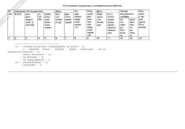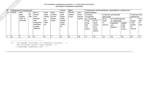 - 1317Журнал учета материалов, разрешаемых судом в порядке исполнения приговоров в отношении осужденных условно и с отсрочкой исполнения приговора (отбывания наказания). Форма № 9.2