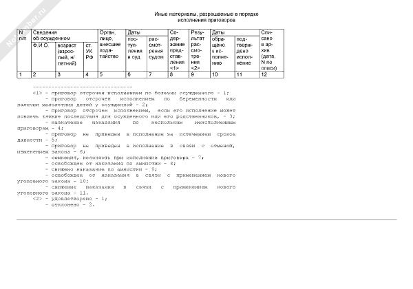 - 1320Журнал учета материалов, разрешаемых судом в порядке исполнения приговоров. Иные материалы, разрешаемые в порядке исполнения приговоров. Форма № 9.5